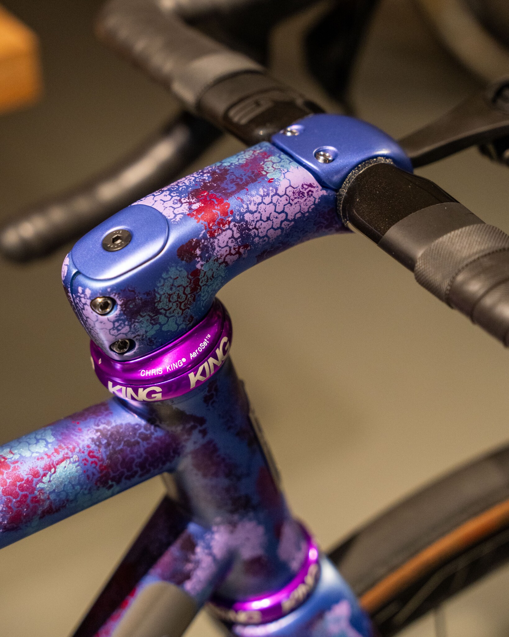 The Chris King headset, bottom bracket, and hubs came with the frame. No choice there, but I wouldn't have it any other way. All in Ultraviolet, all spot-on.